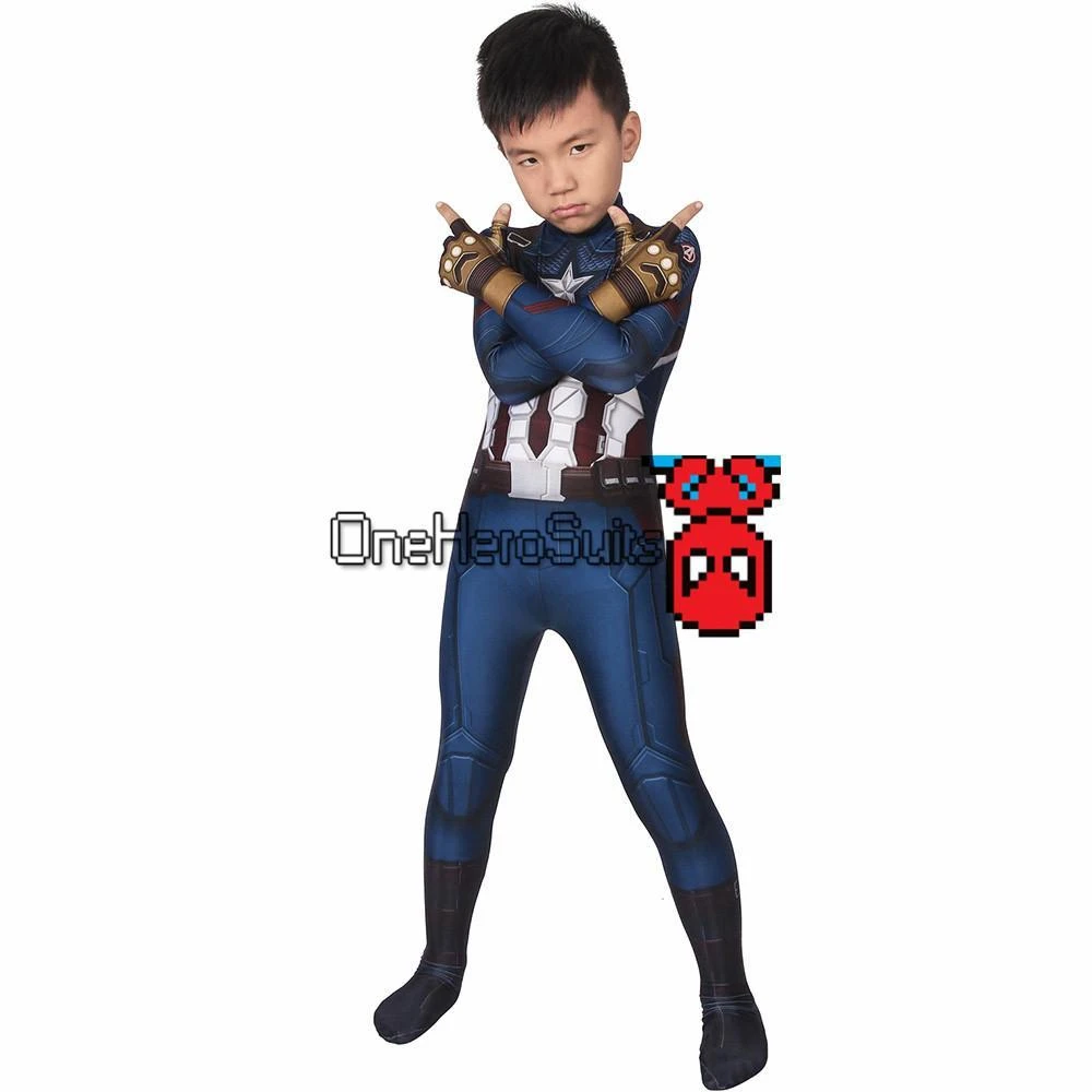 OneHeroSuits Captain America Suits For Kids Detail Printed Cosplay Costume For Halloween