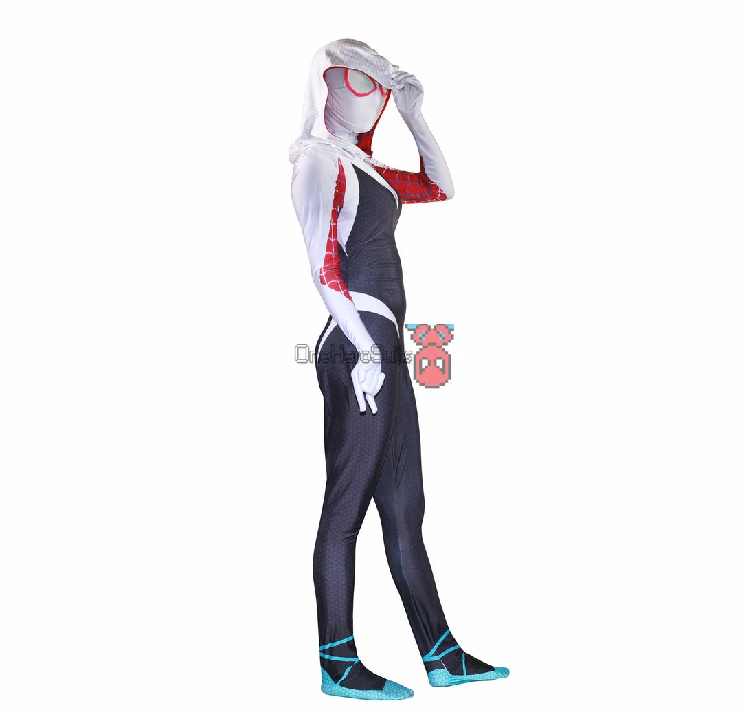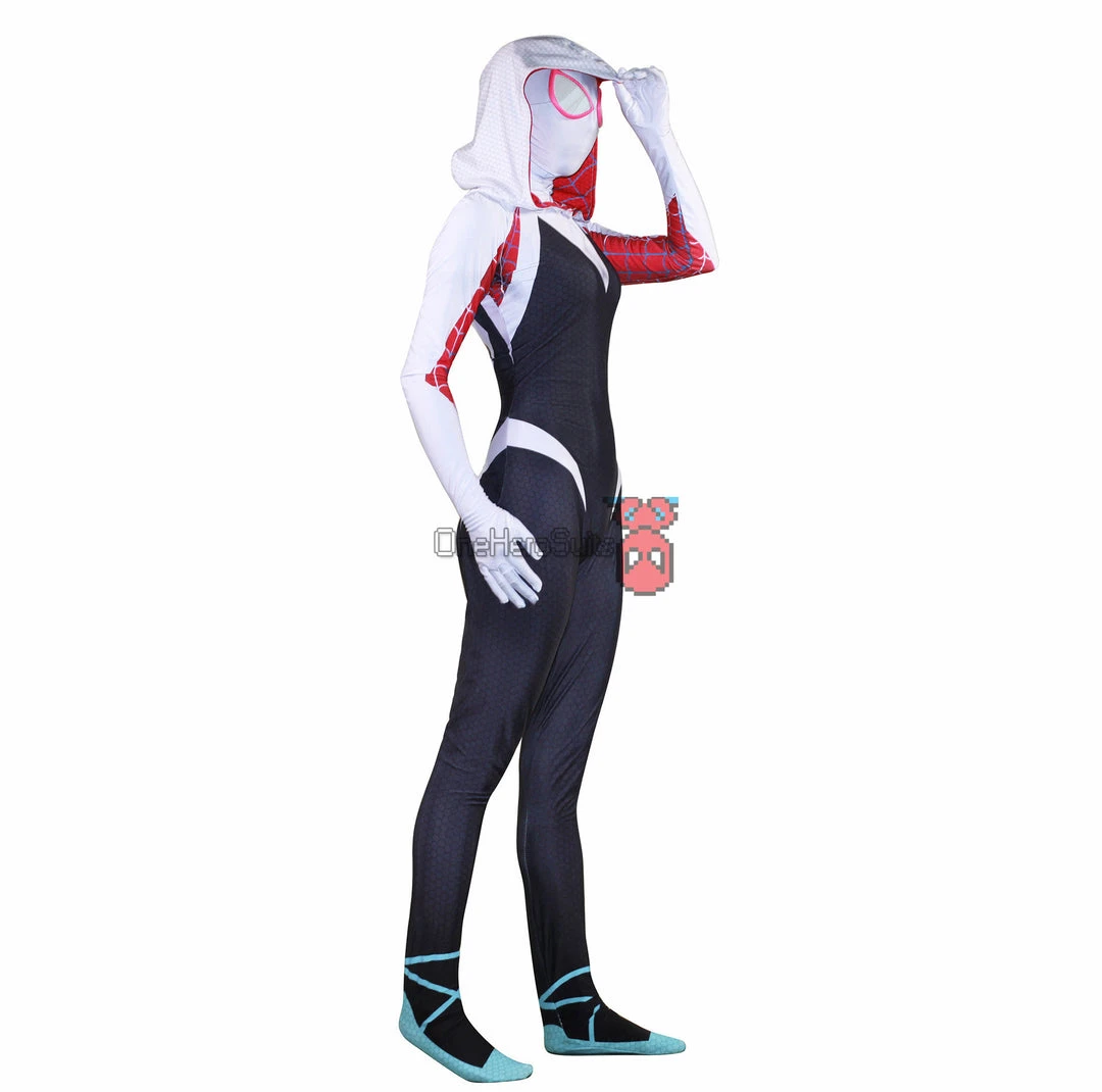 OneHeroSuits Across The Spider-Verse Gwen Cosplay Costume Gwen Spandex Suit Zentai/Jumpsuit